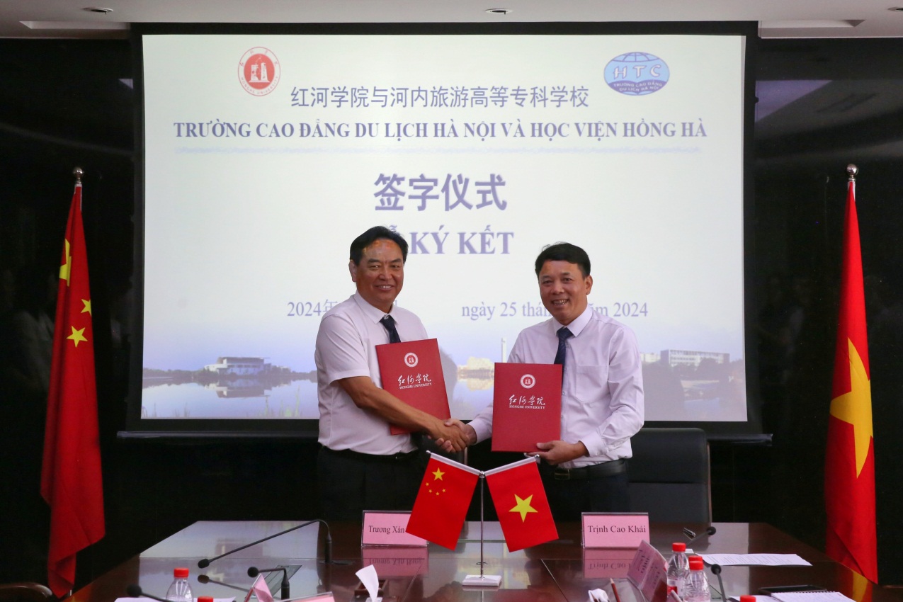 Trường CĐ DLHN thăm và làm việc tại Học viện Hồng Hà, Trung Quốc