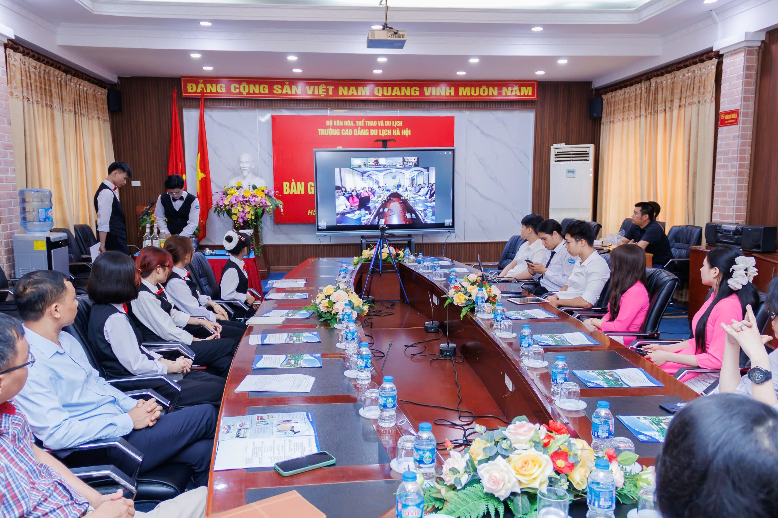 Nhằm mang đến cơ hội tiếp xúc và trải nghiệm quốc tế cho sinh viên, chiều ngày 16/6/2025, Trường Cao đẳng Du lịch Hà Nội đã tổ chức buổi giao lưu trực tuyến đầy sôi động với Học viện Khách sạn và Du lịch Pislsen (Cộng hòa Séc)