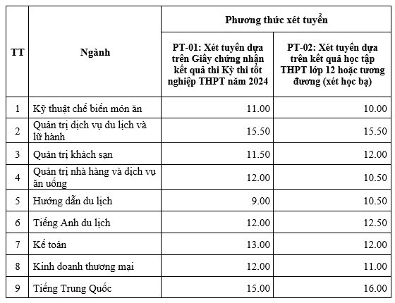 (Cập nhật thường xuyên) Trường Cao đẳng Du lịch Hà Nội trân trọng thông báo Điểm trúng tuyển và danh sách thí sinh trúng tuyển trình độ Cao đẳng, Trung cấp, chương trình song bằng (học chương trình GDTX cấp THPT kết hợp học chương trình Trung cấp) như sau: