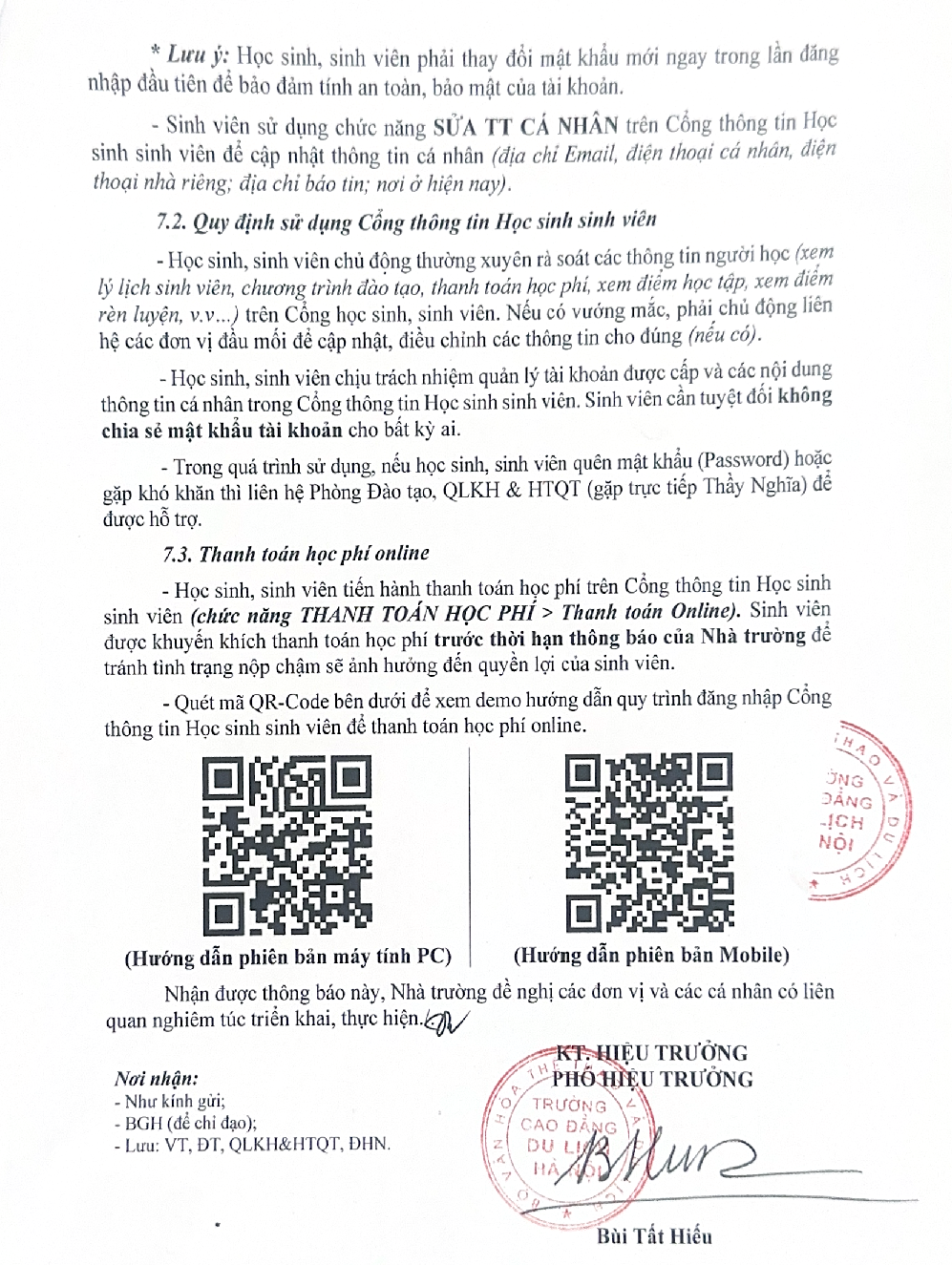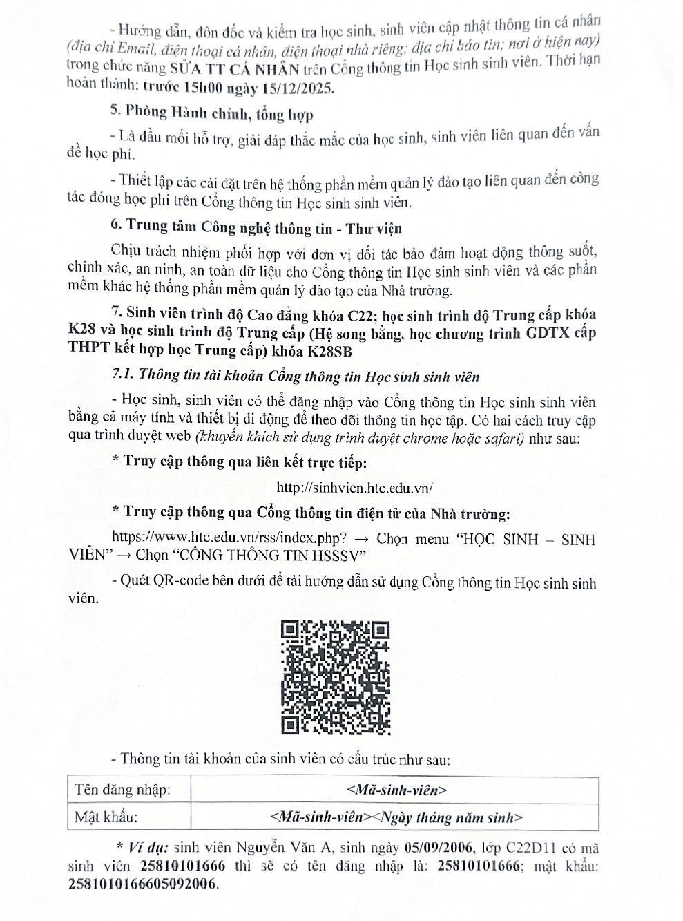 Thông báo số 1724/TB-CĐDLHN ngày 24/11/2025 Về việc cấp tài khoản Cổng thông tin sinh viên cho sinh viên C22, K28 và K28SB